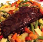 Déglacer de 10 cl de vin de Tokay.Après réduction, mouiller de 20 cl de fond de veau peu lié.