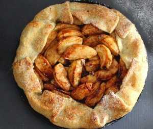 Étendre la pâte à tarte sur un diamètre 2 cm plus large que le moule afin que les bords recouvrent les pommes.