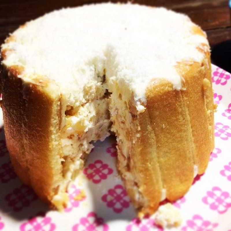 Dans un saladier, mélanger le fromage blanc les tranches d’ananas coupées en morceaux et la noix de coco. Incorporer ce mélange dans le moule à charlotte.