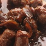 Quand ils sont bien dorés, les retirer de la cocotte et à leur place ajouter l'oignon coupé en petits morceaux et les gousses d'ail tranchées.
