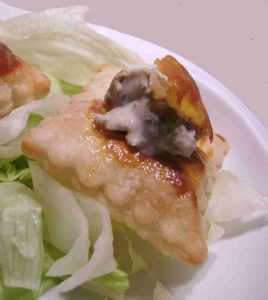 Ouvrir les rectangles de pâte en 2 et fourrer-les de champignons.