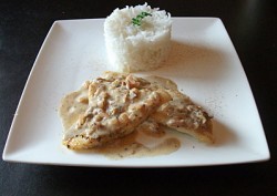 Servir le poisson nappé de la sauce avec le riz.