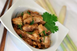 Recette de : Poulet à la citronnelle. Servir le poulet à la citronnelle accompagné de pâtes de riz fraîches, agrémentées de graines de pavot.