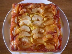 Faire un caramel blond dans le fond du moule. Disposer les pommes sur le caramel, puis verser la pate sur les fruits.