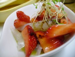 Pendant ce temps, découpez les fraises en dés, et posez-les dans le beurre doré.