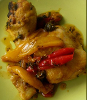 Ingrédients de la recette Poulet aux poivrons rouges, verts