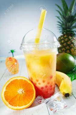 Couper grossièrement les bananes et la mangue, et les mixer à l'aide d'un robot mixeur. Verser la purée obtenue, dans un grand saladier.