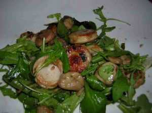 Juste avant le service réchauffez échalote, boudin et marrons dans la même poêle et servez tiède sur lit de salade.