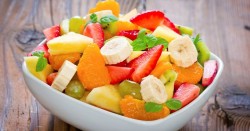 Couper les fruits en petits morceaux et les mélanger dans un saladier.