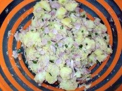 -10 pommes de terres nouvelles-2 boîtes de thon de 140-150 g-1 échalotes-le jus d'un citron-ciboulette ciselée-3 c. à soupe de crème fraiche-sel poivrePréparation de la recette Salade de pommes de terre au thon