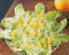 Bien assaisonner les tranches d'oranges, le mélange précédant et la chiffonnade de laitue.