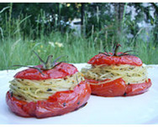 Recette de : Tomates farcies aux spaghetti et au pesto.